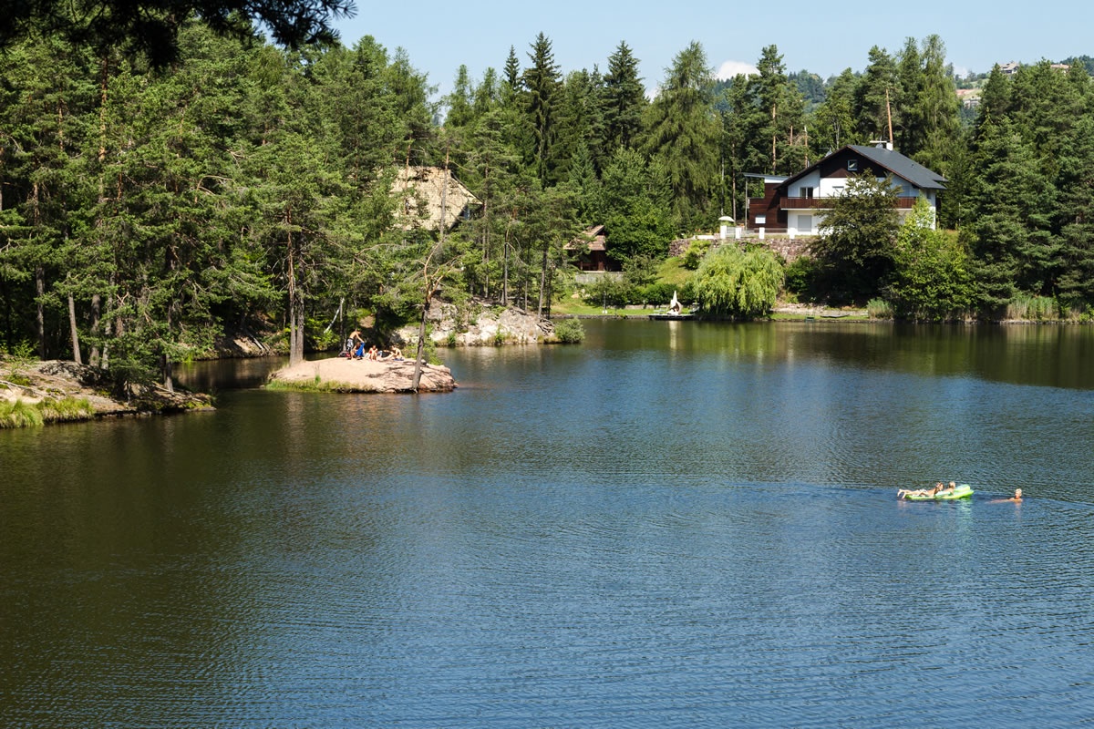 Nach einem abenteuerreichen Tag können Sie im Sommer ein Bad im erfrischenden Wasser des Wolfsgrubner Sees, etwa 1 Kilometer (15 Minuten Gehzeit) von unserem Hof entfernt, genießen.