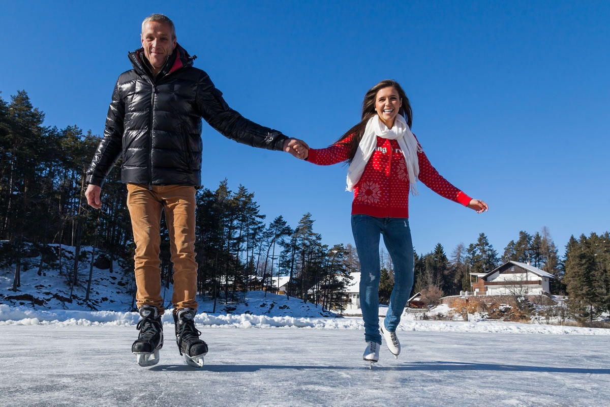 Der Wolfsgrubner See verwandelt sich im Winter zu einem beliebten Platz für Eisläufer, während Hockeyspieler und Hockeyliebhaber im Eishockeystadion, der Arena Ritten, auf ihre Kosten kommen.